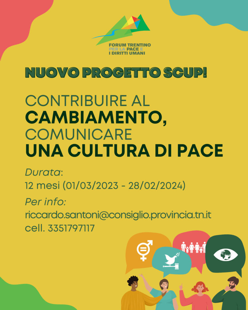 Sono aperte le candidature per il nostro nuovo progetto di Servizio Civile dal titolo “Contribuire al cambiamento, comunicare una cultura di pace”, che inizierà a marzo 2023 e durerà 12 mesi.